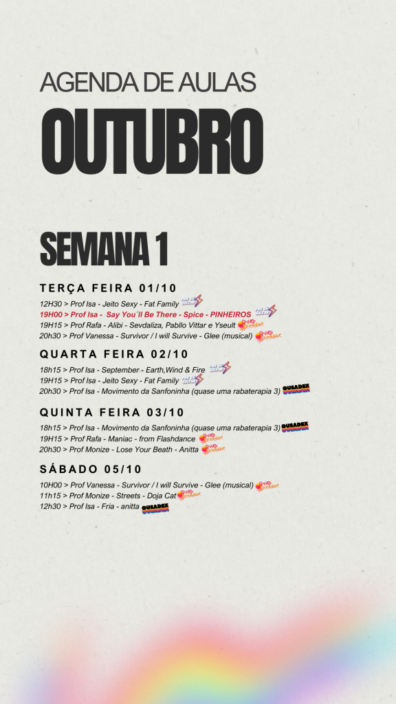 Aulas de coreografias ao som de todos os ritmos, hits do pop, funk e muito mais!
